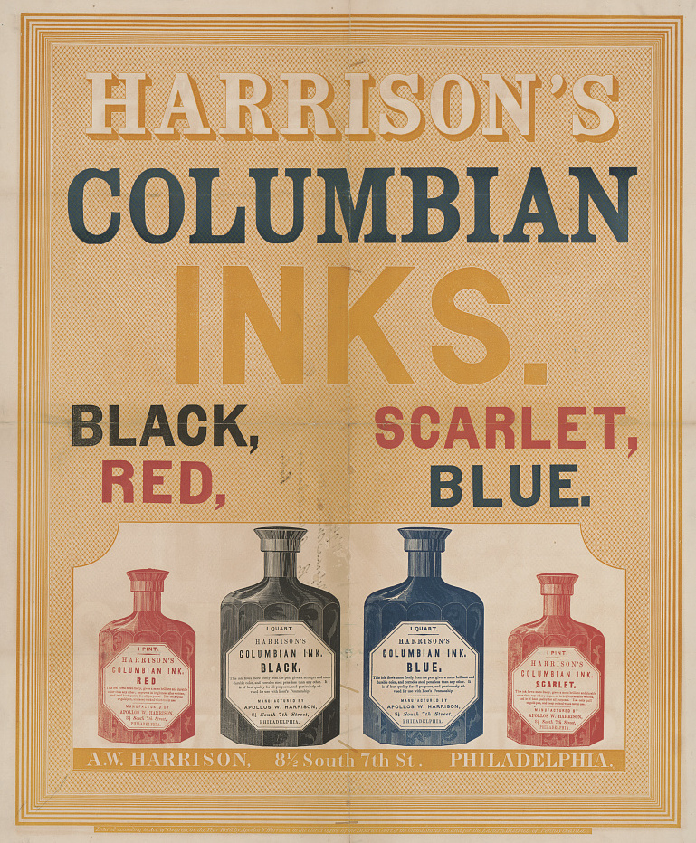 Harrison’s Columbian inks, black, scarlet, red, blue. [United States, publisher not transcribed], c. 1846. Library of Congress
