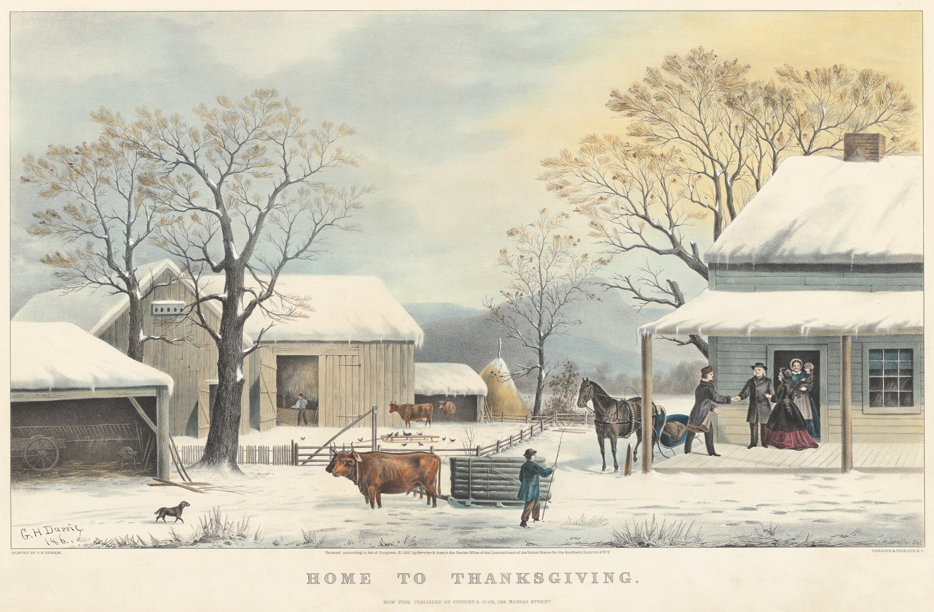 Durrie, George H. and John Schutler, Home to Thanksgiving, ca. 1867, New York, Currier & Ives. National Gallery of Art, Collection of Mr. and Mrs. Paul Mellon. Public Domain. Click to to open larger image in a new window.