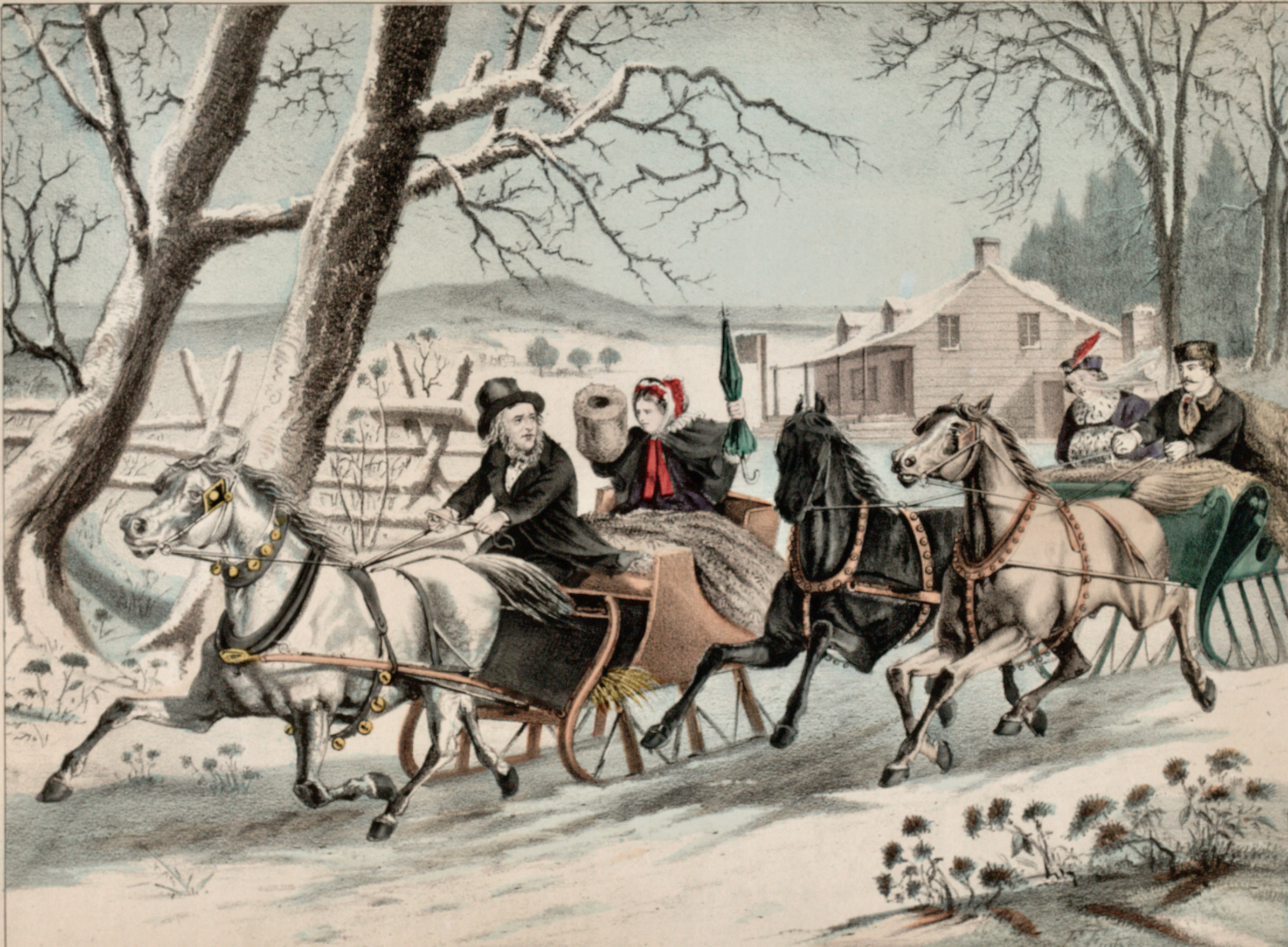 Kimmel and Forster, publishers, “Winter Pleasure in the Country,” circa 1865. National Museum of American History, Peters Prints Collection, Smithsonian Institution.1 Note the modest straps of jingle bells on the one-horse sleigh and the much more ostentatious—and louder—straps of bells on the two-horse sleigh.