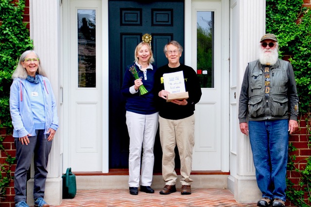 I’m also please to note that Shaw’s hard work and commitment to the mission of the Clark House did not go unrewarded, as Jonathan Clark House director Nina Look and museum preservation manager Fred Derr recently maintained social distancing while delivering a handsome certificate and a tasty pie!
