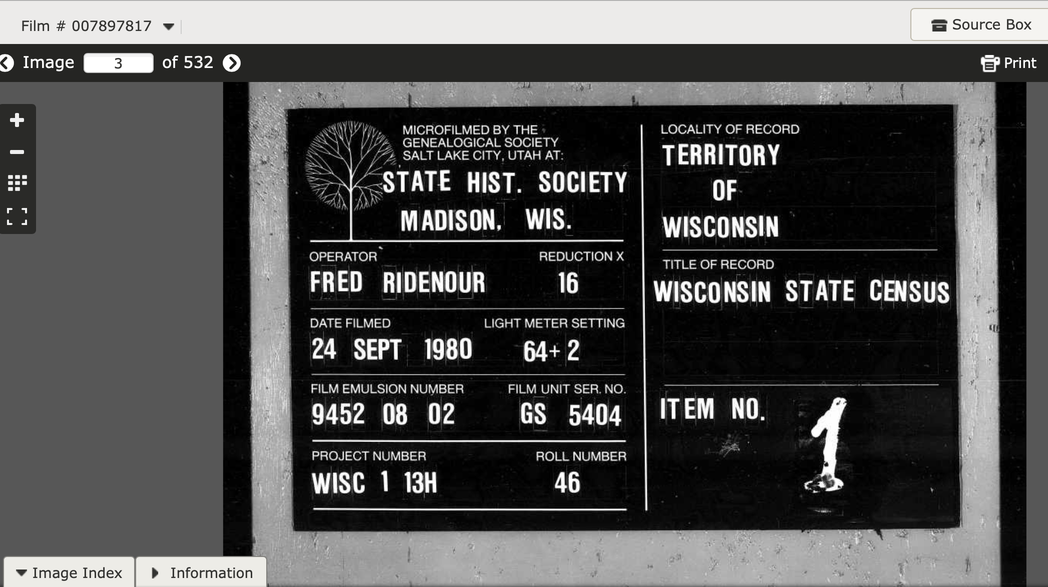 Here are some links and tips to speed your search. For the FamilySearch.org index, click here: United States, Wisconsin online census collections. You should land on a page that looks like this: