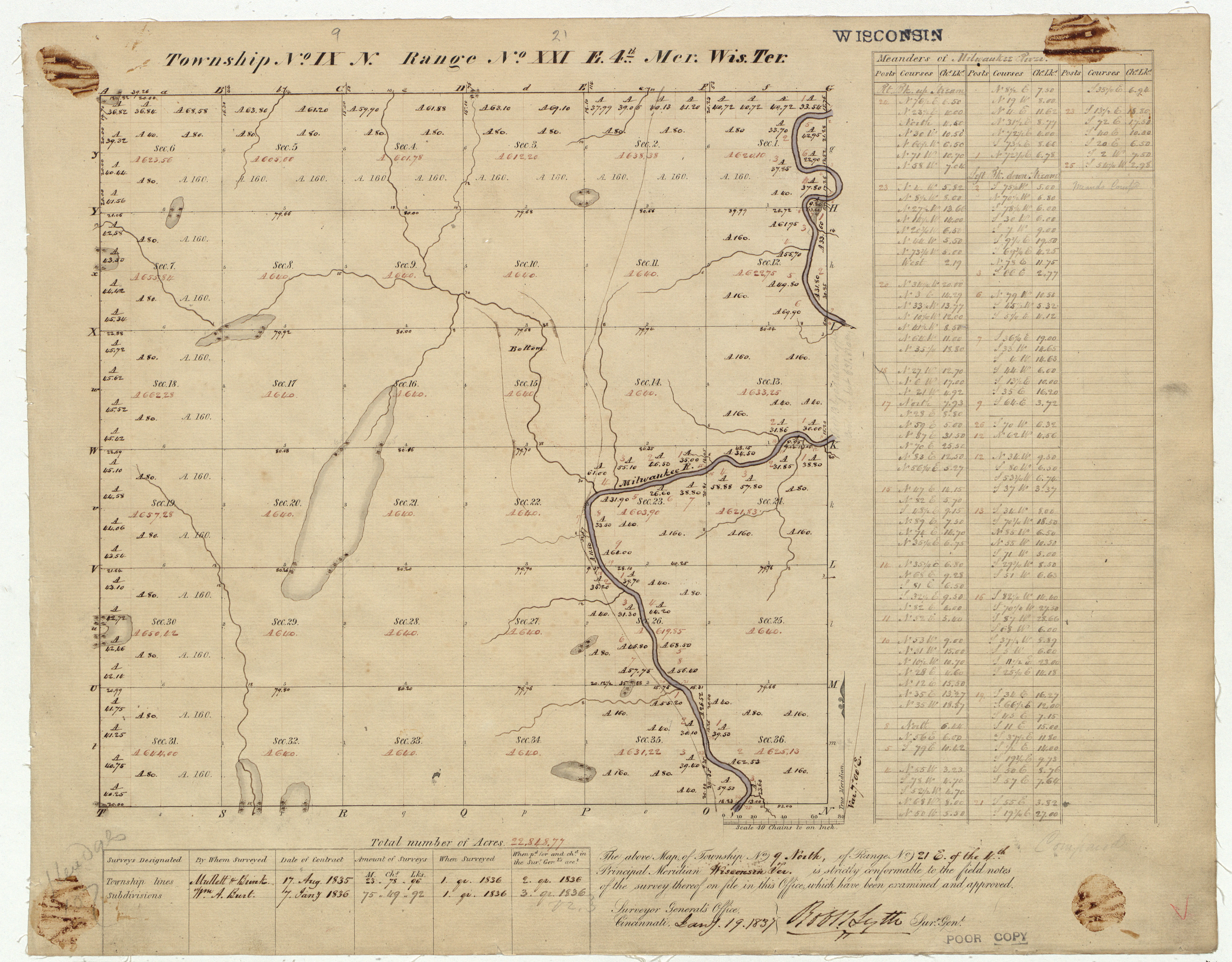 While on the BLM/GLO site, you can also view and download images of the surveyor’s original notes and notebooks. Naturally, these include many measurements and details of survey reference points. But the notebooks also include copious observations of land conditions (wet, dry, swampy, prairie), rivers, lakes, and the types of trees found in each mapped area. If you are interested in what an early settler encountered when he or she bought land from the government and “cleared a settlement,” be sure to read the notebooks. And enjoy the maps!