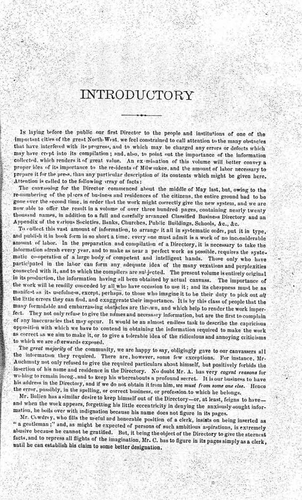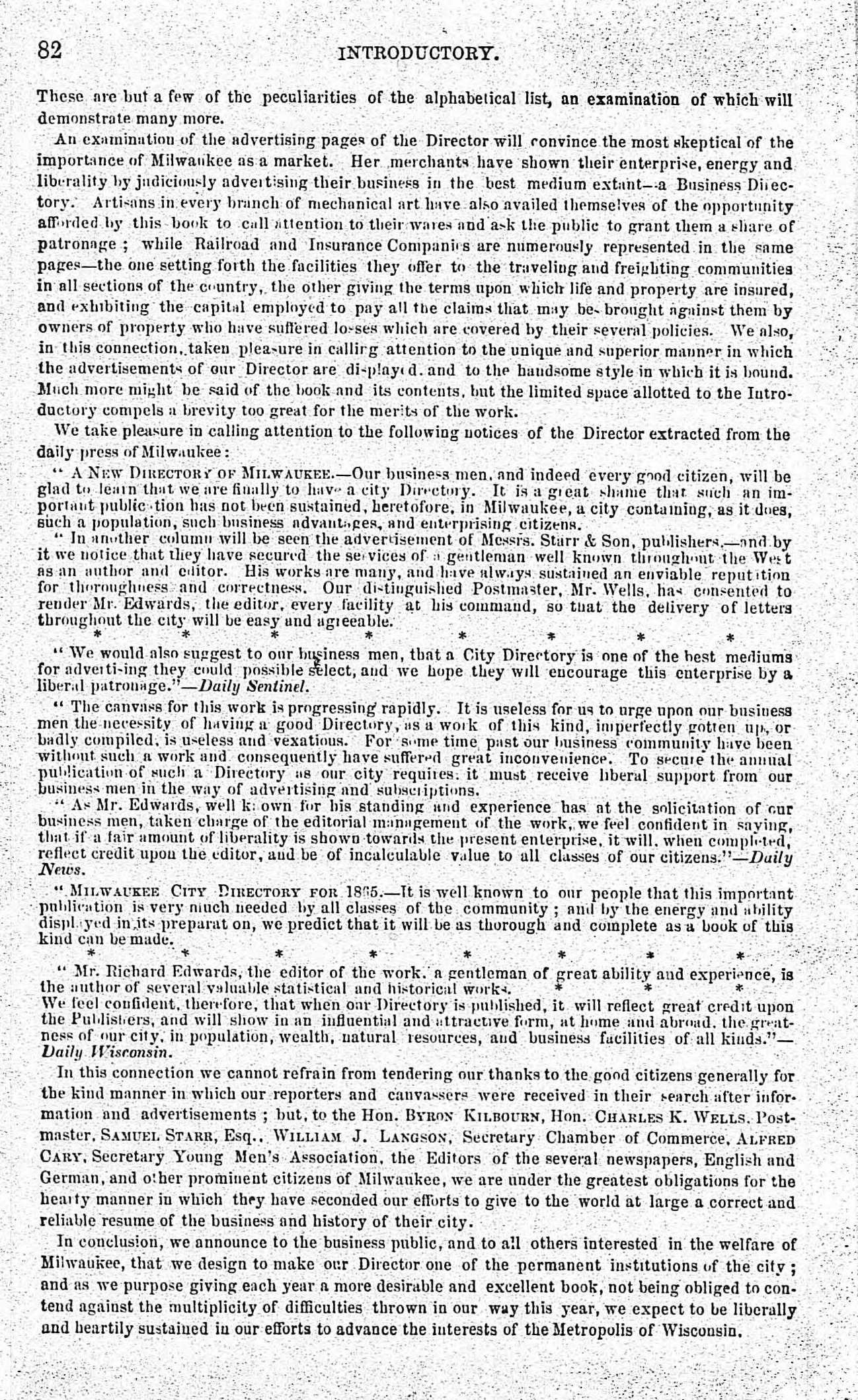The final page of the publisher’s “Introductory” is mostly filled with what we might call “brand-building” puffery and self-congratulation, concluding with a list of thanks to various important Milwaukee businessmen and government officials: