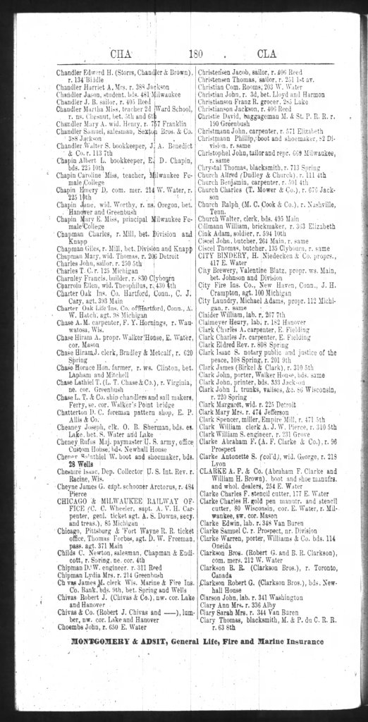 As we discussed previously, it appears that there was no Milwaukee directory published in 1864. Did the publisher go out of business? Did the war years cause manpower shortages that made canvassing for information impossible? Do any of our readers know more about this missing 1864 directory? If so, please reply. I’d like to know more.