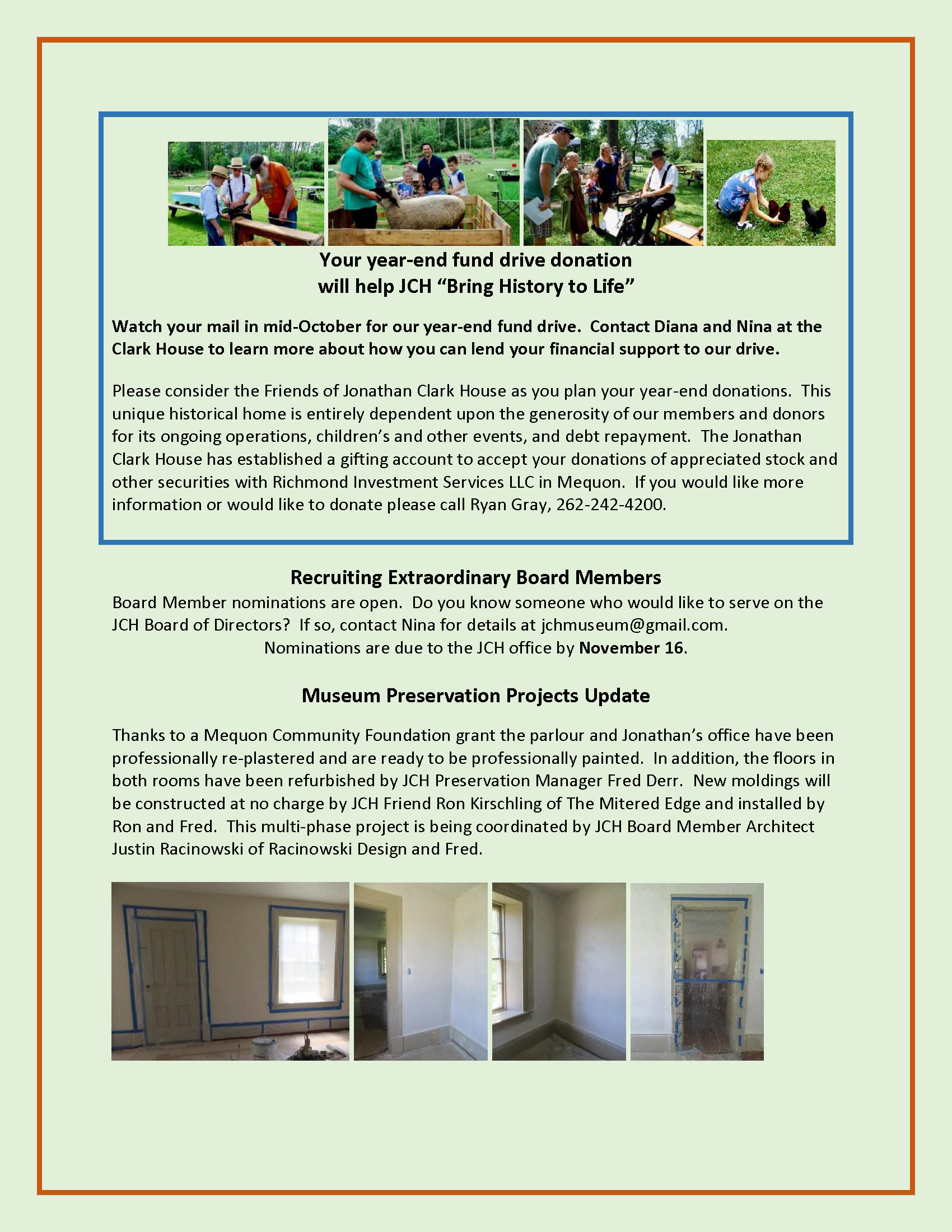 If you’d like to open and/or download the complete, five-page PDF, click here. Or, if you want to catch up with your Jonathan Clark House news here on the blog, click “Continue reading” (below) and enjoy.