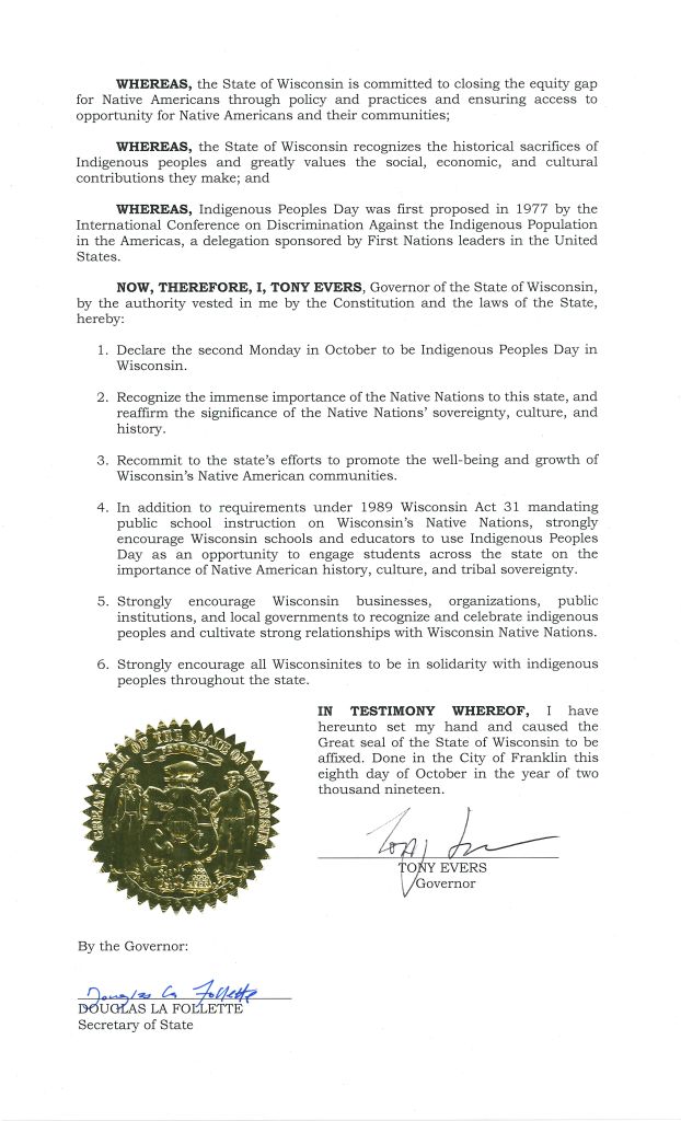 UPDATED: October 11, 2020, to include Gov. Evers’s proclamation from 2019. Click images to enlarge and read in new windows, or click here to open a pdf of the complete document.