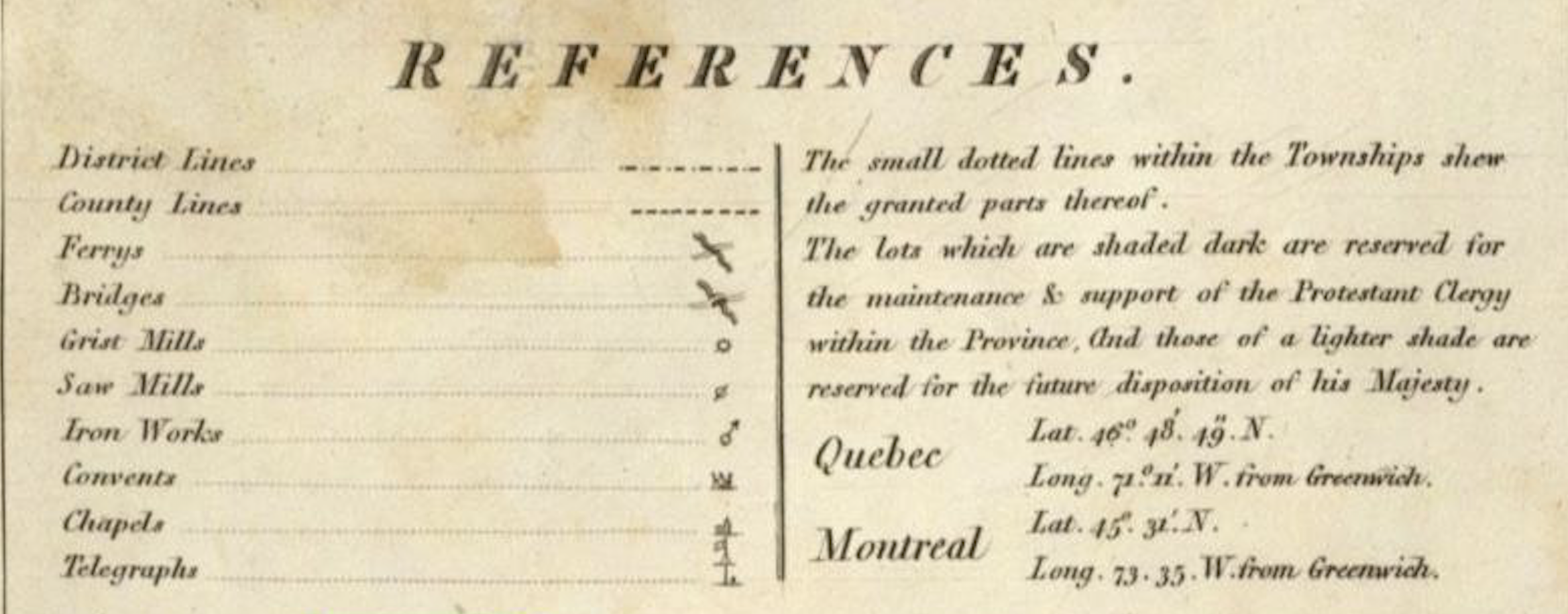 To His Royal Highness George Augustus Frederick … This Topographical map of the Province of Lower Canada, shewing its division into Districts, Counties, Seigniories, & Townships … Is … Most gratefully dedicated by… Joseph Bouchette, His Majesty’s Surveyor General of the Province & Lieutt. Colonel C.M. … Published by W. Faden, Charing Cross, Augst. 12th. 1815. Engraved by J. Walker & Sons, 47 Bernard Street, Russell Square, London. J. Walker sculp.
