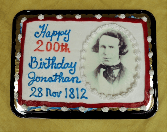 One of the highlights of Saturday’s post was this photo of Jonathan’s excellent 200th Birthday cake from 2012, courtesy of Anne Bridges: