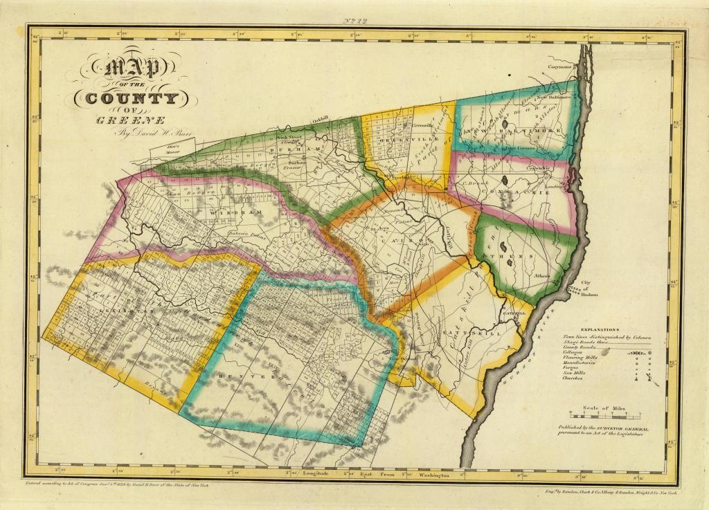 Burr, David H., Map of the County of Greene. Published by the Surveyor General, pursuant to an Act of the Legislature. Entered according to an Act of Congress Jany. 5th. 1829 by David H. Burr of the State of New York. Engd. by Rawdon, Clark & Co., Albany & Rawdon, Wright & Co., New York. Credit, David Rumsey Map Collection, David Rumsey Map Center, Stanford Libraries, non-commercial use permitted under Creative Commons license. Click image to open larger map in new window.