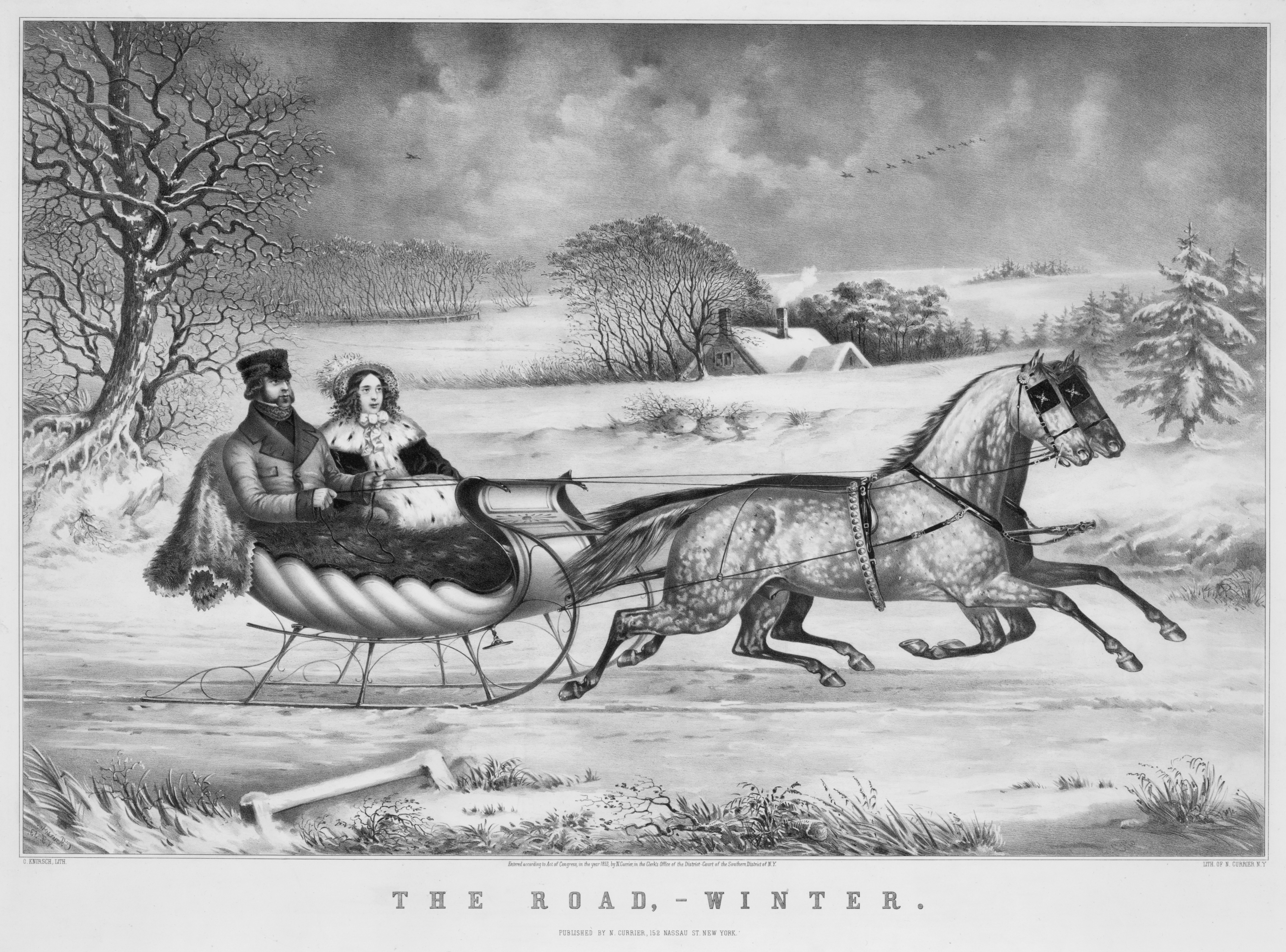 - Currier & Ives. (1853) The road, winter / O. Knirsch, lith. United States, 1853. New York: Published by Currier & Ives. Library of Congress. (lightly retouched for color balance).