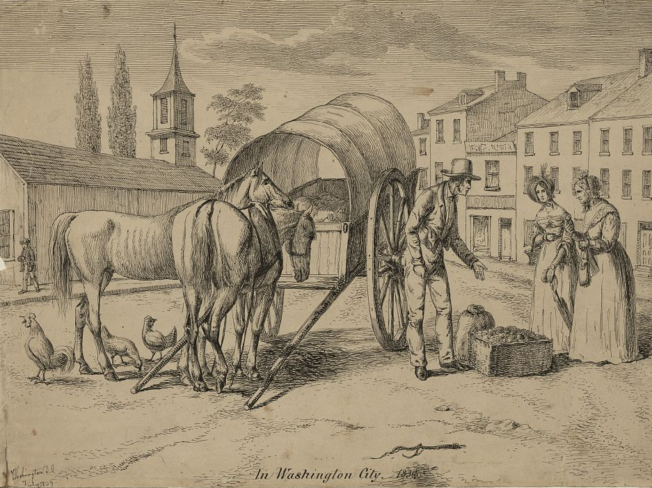 - Kollner, Augustus, Artist. In Washington City [man with two horses and a cart selling produce]. Washington D.C., 1839. Drawing. Library of Congress.