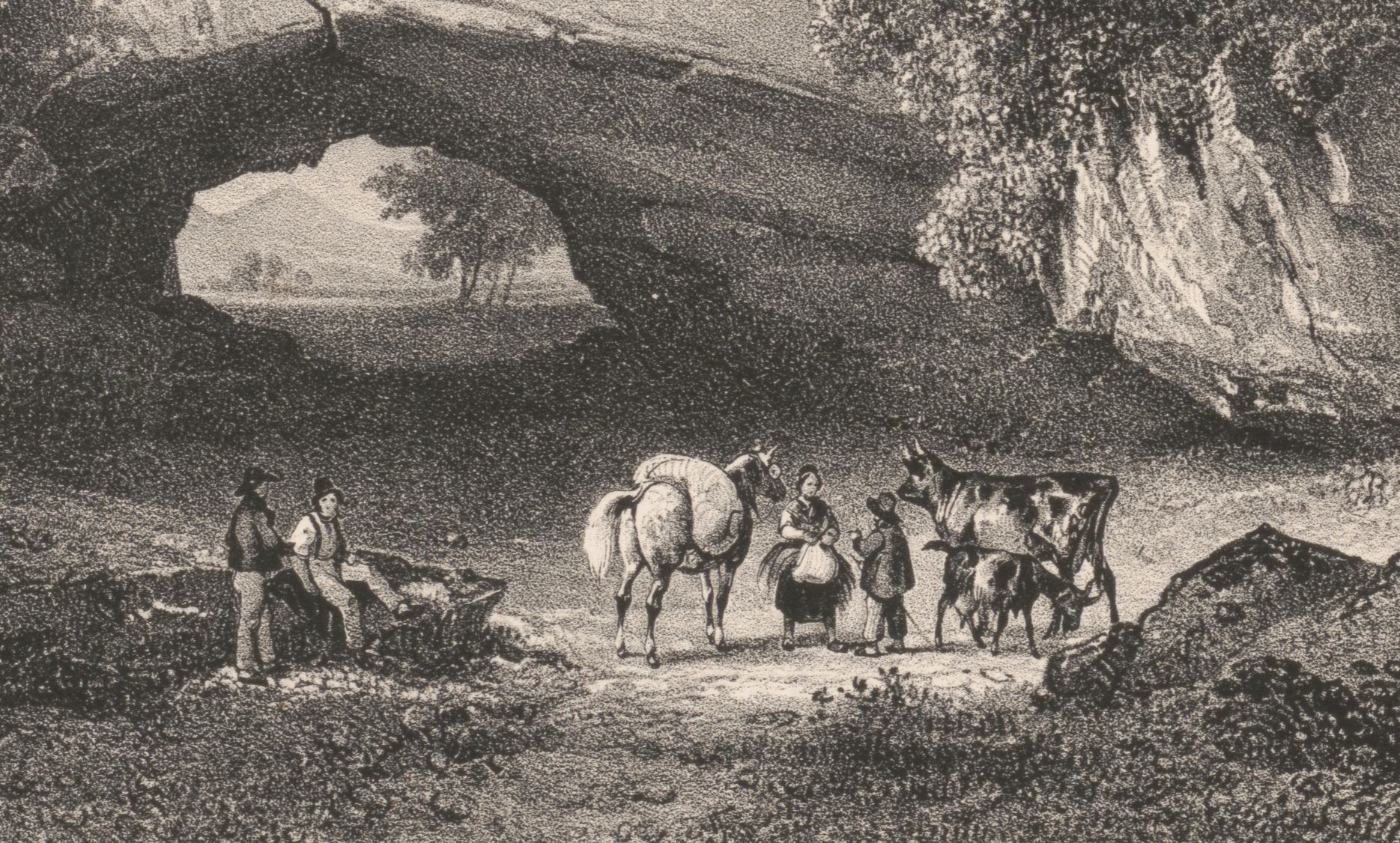 - Anon., [Landscape With Natural Bridge], detail, [Place not identified: publisher not identified, circa 1840-1875] Lithograph. Library of Congress. For full image, click LoC link.
