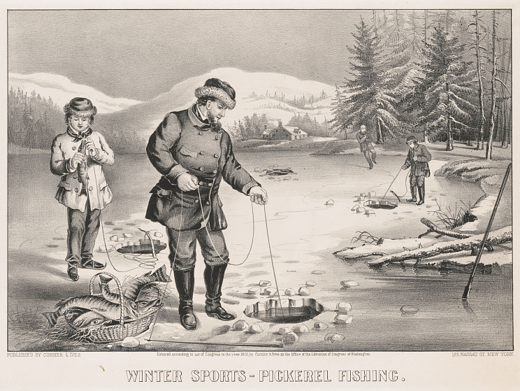 Currier & Ives. Winter Sports – Pickerel Fishing, New York, 1872. Library of Congress. Public Domain. Click to open larger image in new window.