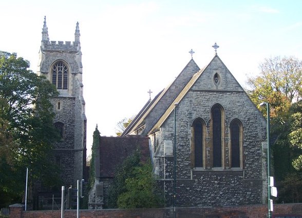 St. Mary’s Church, Chatham, Kent. Photo copyright ©2008 David Anstiss; licensed for reuse under Creative Commons License, lightly cropped for this blog. Source. Click to open larger image in new window.