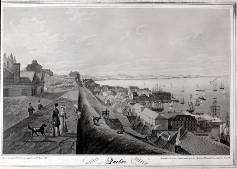 Hunt., C., Quebec vue des remparts, 1833 (reproduction, n.d.), BAnQ Québec, Collection initiale, (03Q,P600,S5,PLC73), public domain. Click to open larger image in new window.