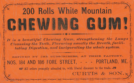 Trademark registration by Curtis & Son for White Mountain brand Chewing Gum, 1874. Library of Congress.