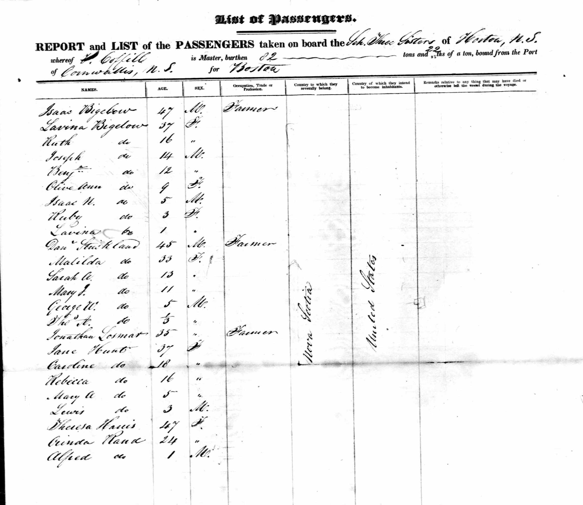 Strickland descendants Steven Clark Van Slyke and Lynette Thompson record Daniel Strickland as a sea captain (Lynette and Steve: any details? ship names?) But by the time Daniel Strickland emigrated to the United States with his family, on November 2, 1835, he listed his (future?) occupation as “farmer.”