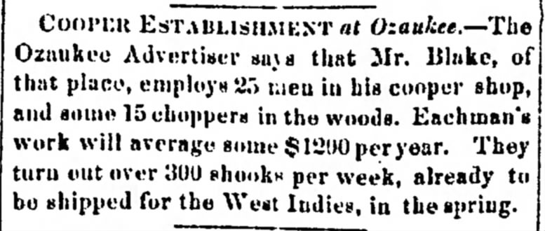 “Cooper Establishment at Ozaukee,” [Milwaukee] Free Democrat, citing Ozaukee Advertiser, Monday, Jan. 8, 1855, p. 3