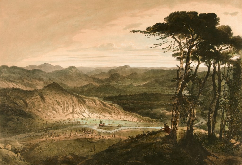 I’ve never been to California’s gold rush country, so I don’t know how accurate this unknown artist’s View of Sutter’s Mill & Culloma Valley. On the South Fork of the American Line, Alta, California might have been.1 It’s drawn in the Romantic style of the time, although it’s clear the unspoiled, natural, “sublime,” view of El Dorado county’s hills and mountains are quickly giving way to the shelters and “diggings” of the immigrant gold miners and the nearby rough-and-tumble mining town of Culoma.