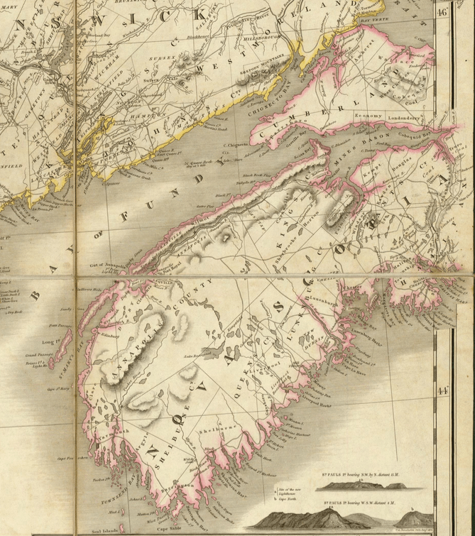 Bouchette, Map of the Provinces of Lower & Upper Canada, 1831 (detail, Nova Scotia)