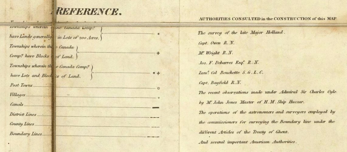 Bouchette, Joseph Jun., et. al., Map of the Provinces of Lower & Upper Canada, 1831. Detail, Reference.