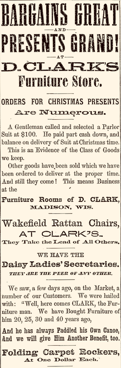 “Darwin Clark,” (Madison) Wisconsin State Journal 1884-12-26 p 8 (detail)