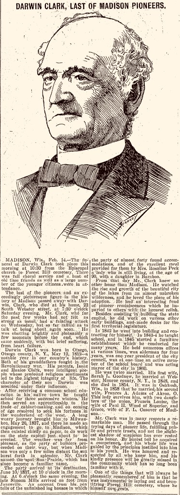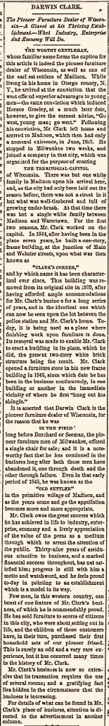 “Darwin Clark,” (Madison) Wisconsin State Journal 1884-12-26 p 8