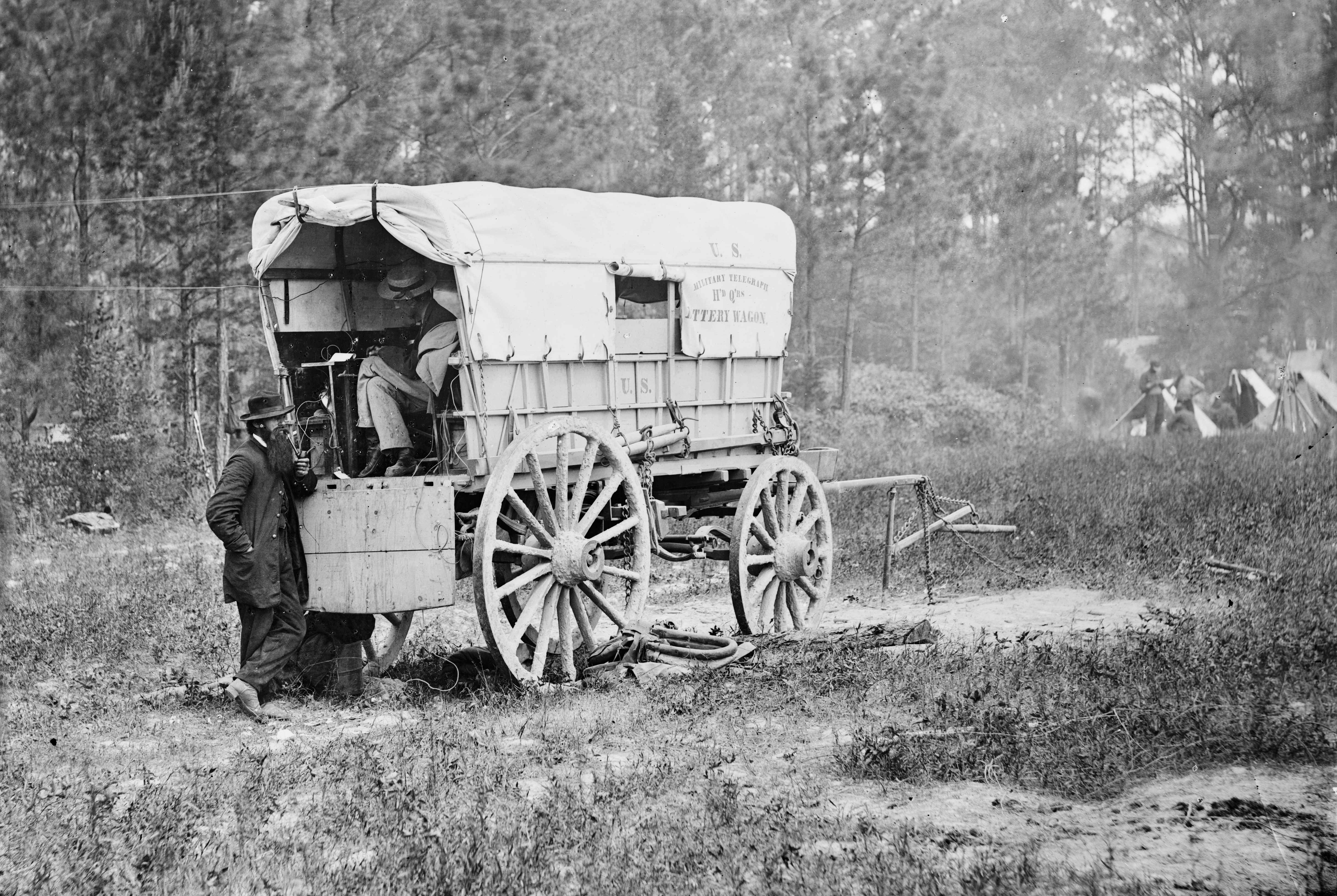 - Knox, David, photographer. Petersburg, Va. U.S. Military Telegraph battery wagon, Army of the Potomac headquarters. Petersburg, Virginia, June 1864. Library of Congress.