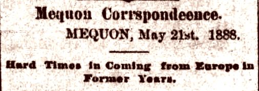 Our next few CHH blog posts are based on a vivid, first-person memoir that I thought you might find interesting. It’s a “Back in my day…” type of personal reminiscence, published in 1888 in the form of two “letters” received by the Cedarburg News newspaper. The first, titled “Mequon Corrspondeence” [sic], was published on page 2 of the News on May 21, 1888; the second, titled “Mequon Correspondence. [Continued.]” was published the following week, on May 28, 1888. also on page 2.