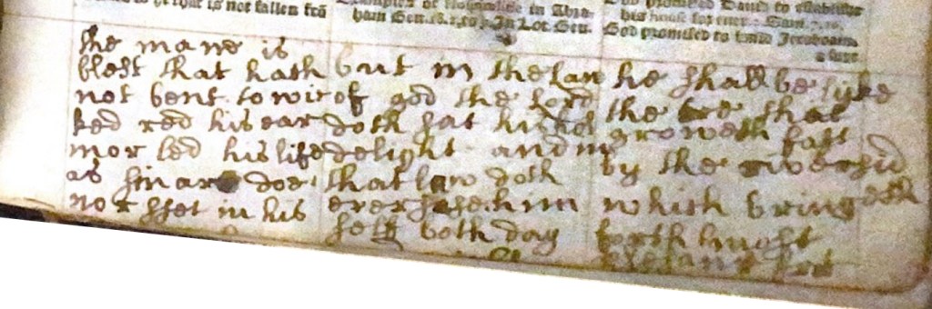 That’s still a bit of a mystery. On the one hand, we do have a solid—though perhaps not unbroken—history of Bonniwell family inscriptions in this Bible, beginning in 1697 and continuing through the early 1900s. First-person family recollections record the Bible’s direct descent from that time until the present day. And we know that this Bible was first in the possession of a related branch of the Bonniwell family and then owned by “our” Bonniwells no later than 1795: