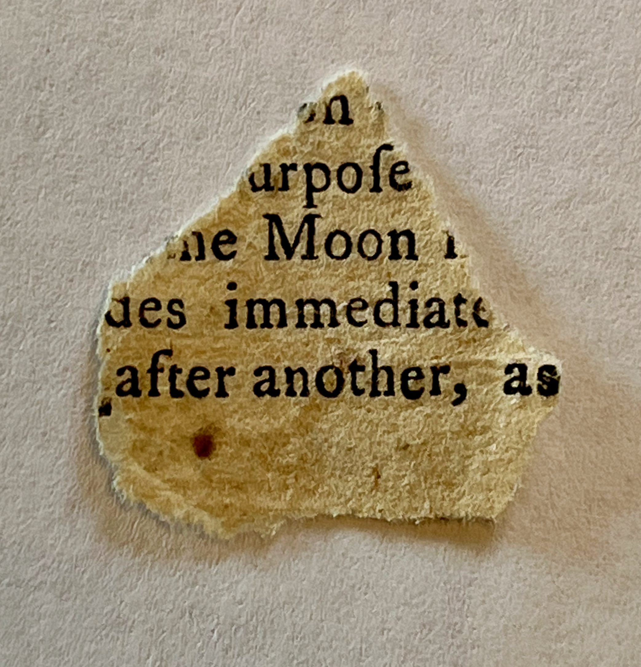 I’m spending some of my time this winter on projects related to the cataloging, interpretation and display of our historic Bonniwell Family Bible. One of the items on my “to do” list involves the study of a number of Bonniwell papers and other ephemera that were donated along with the Bible itself. Some of the miscellaneous papers are self-explanatory and easily understood. But one little fragment of printed text has me baffled, and I need your help, history lovers!