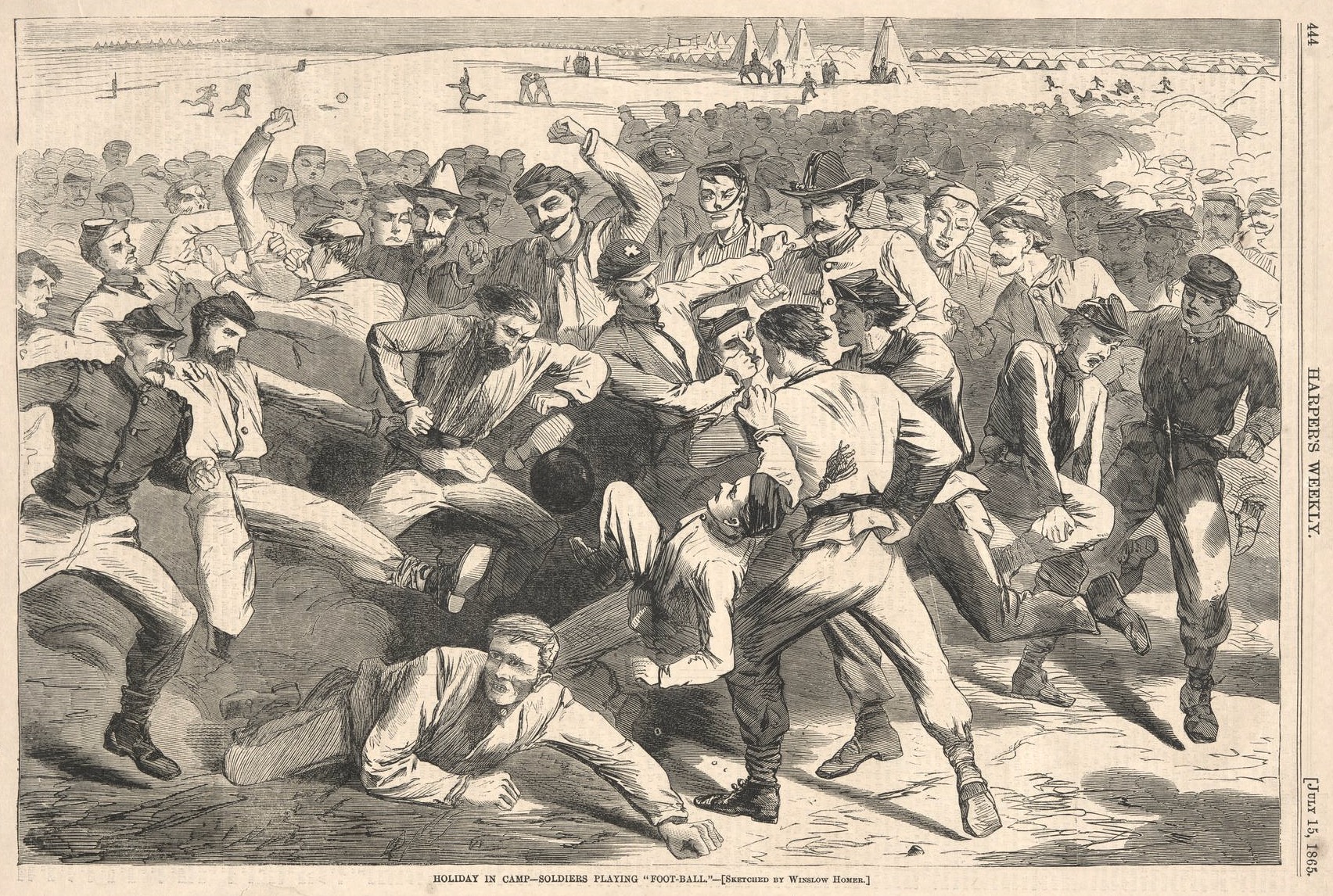 Homer, Winslow, Holiday in Camp – Soldiers Playing “Foot-Ball,” from Harper’s Weekly, July 15, 1865, Yale University Art Gallery, Gift of Allen Evarts Foster, B.A. 1906.